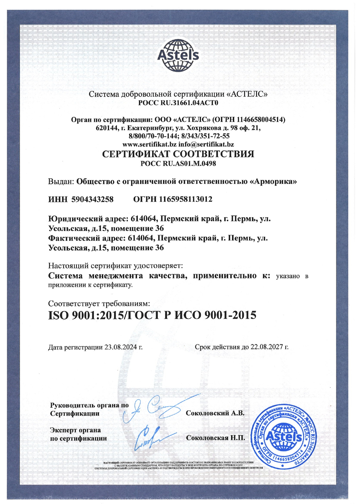 Производство сертифицировано в соответствии с ISO 9001:2015 / ГОСТ Р ИСО 9001-2015.